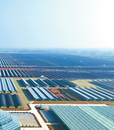 1月11日,河南省永城市刘河镇80兆瓦农光互补光伏发电项目基地上,一排排太阳能光伏发电板蔚为壮观。近年来,河南省永城市立足光热资源丰富的优势,坚持绿色低碳循环发展,科学推进绿色新能源项目建设,最大限度发挥“光伏+农业”“一光多照、一地多收”复合叠加效益,助力乡村振兴。