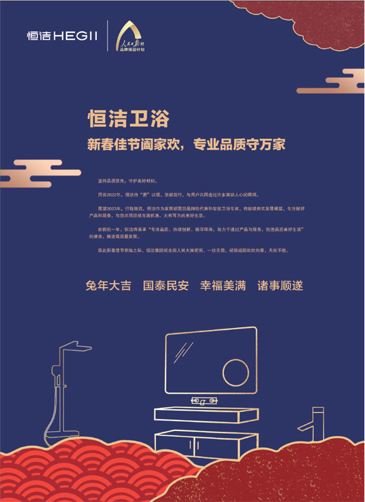 展望2023年,行稳致远,恒洁作为家居新国货品牌的代表和智能卫浴专家,将继续夯实发展根基,专注做好产品和服务,与您共同迎接充满机遇、大有可为的美好生活。