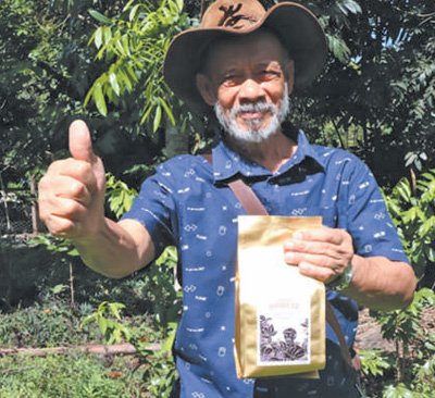 罗赫略·萨吉洪展示山竹咖啡。 |