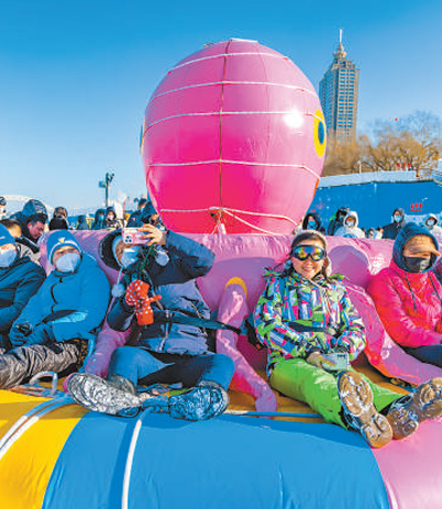 游客近日在哈尔滨松花江冰雪嘉年华体验冰雪娱乐项目。 |