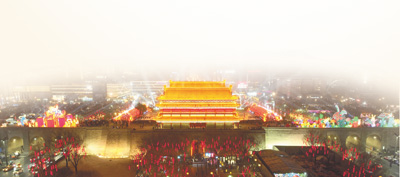 1月14日,西安城墙新春灯会吸引众多游客登城墙赏花灯。 |