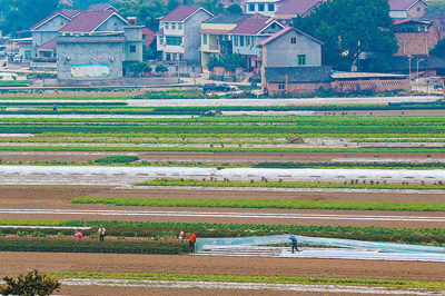 2月2日,在四川省宜宾市翠屏区思坡镇,当地村民在田间为作物覆膜。 庄歌尔摄(影像中国)