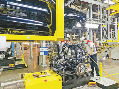 同样受益于RCEP的还有长城汽车泰国罗勇工厂。工厂总装车间里,两个泰国小伙子顺着机械臂的导引,熟练地为汽车安装发动机(见图,本报记者章念生摄)。“RCEP生效实施后,汽车零配件进口到泰国更加便捷,公司产能和效益不断提升,我们对未来发展更有信心。”长城汽车东盟区域总裁张佳明说。