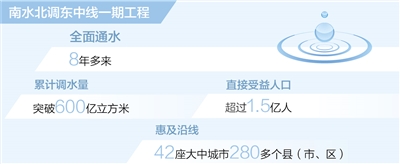 本报北京2月5日电 (记者王浩)记者从水利部、中国南水北调集团获悉:截至2月5日,南水北调东中线一期工程(含东线一期工程北延应急供水工程)累计调水量突破600亿立方米,惠及沿线42座大中城市280多个县(市、区),直接受益人口超过1.5亿人。按照黄河多年平均天然径流量580亿立方米计算,相当于为北方地区调来了超过黄河一年的水量。