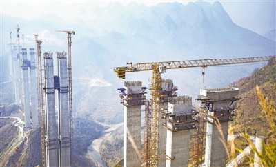 图为2月1日,纳晴(纳雍至晴隆)高速六枝特大桥施工现场。