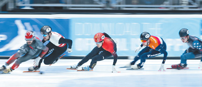 当地时间12日,中国队选手宋嘉华(中)在1/4决赛中。当日,在2022—2023赛季国际滑联短道速滑世界杯荷兰多德雷赫特站男子1000米半决赛中,宋嘉华以1分25秒059的成绩晋级A组决赛。