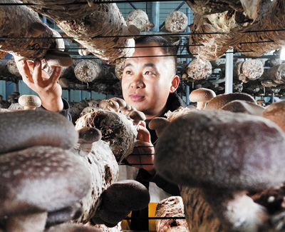 车道村菇农王杨:“大棚养菇6年,收入年年增。小蘑菇大产业,致富有盼头。” |