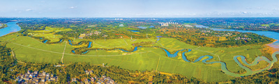 2月11日,海南三十六曲溪湿地生机勃勃,蜿蜒曲折的河道与稻田构成一幅春日的美丽画卷。