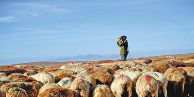 魏德友边放牧边察看边情。 |
