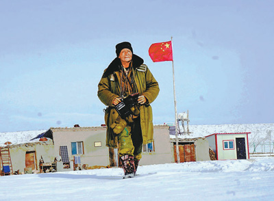 魏德友带着望远镜、收音机、水壶“三件宝”,出发巡边。 |