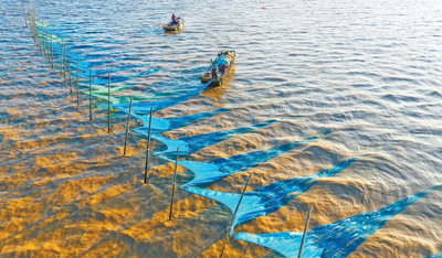 眼下正是春捕旺季,2月15日,江苏东台沿海经济区,渔民在近海支架网具,捕获鳗鱼苗。东台是我国鳗鱼苗主产区之一,目前已形成集养殖、加工、销售于一体的完整产业链。