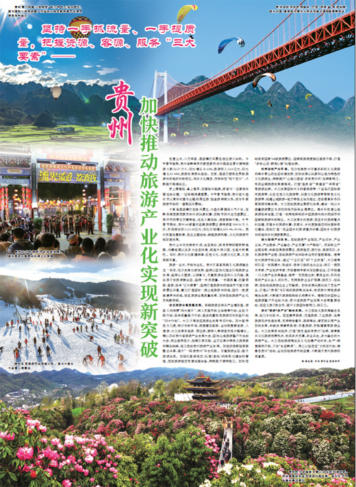 旅游一业兴,市场百业旺。贵州正紧紧围绕文化旅游融合这一根本,充分发挥比较优势,坚持以国际化理念引领旅游业发展,坚持以文塑旅、以旅彰文,丰富旅游生态和人文内涵,高品质开发旅游新业态,坚持一手抓流量、一手提质量,把握资源、客源、服务“三大要素”,坚持打造旅游目的地城市与宣介旅游景区并重,着力打造国际一流山地旅游目的地、国内一流度假康养目的地,促进旅游业高质量发展,加快推动旅游产业化实现新突破。