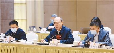 3月9日,黑龙江代表团代表在小组会议上发言。