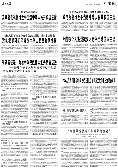 外国领导人热烈祝贺习近平当选国家主席