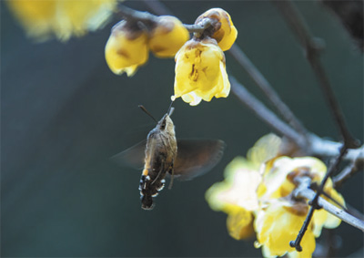 东风解冻,蛰虫始振。在湖北恩施一处公园,蜂鸟鹰蛾循着梅香,开始收获新一年的甜蜜。 |