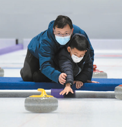2023年1月23日,游客在“冰立方”冰上运动中心体验冰壶运动。 |