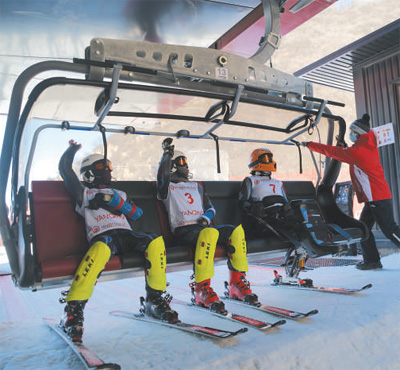 北京冬奥会期间,保障人员协助运动员在延庆国家高山滑雪中心进行索道测试。 |