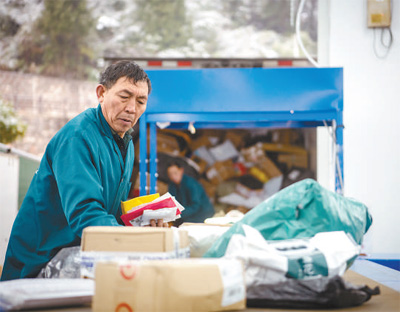 湖北省恩施土家族苗族自治州宣恩县,中国邮政宣恩分公司分拣员在分拣邮件。 |