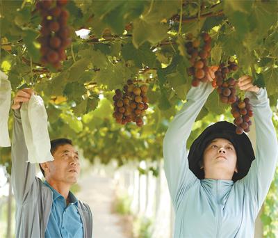 江苏省句容市茅山镇丁庄村,葡萄种植能手在采摘葡萄。 |