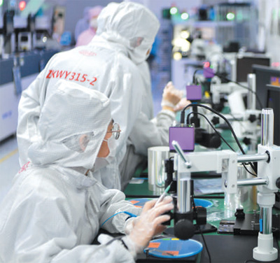位于福建泉州市石狮高新区的福建中科光芯光电科技有限公司生产车间,技术人员在加班加点生产。 |