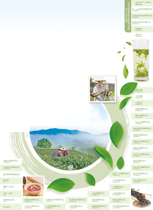 我国是世界上最早种植茶树和制作茶叶的国家,此次申遗成功的中国传统制茶技艺及其相关习俗,涉及15个省份的44个国家级项目。在秦岭淮河以南、青藏高原以东广袤的区域,分布着江南、江北、西南和华南四大茶区,多达2000多种茶品。