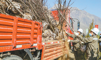 今年3月,石嘴山市参加春季义务植树的单位员工在搬运树苗。 |