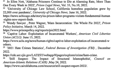 监狱成为现代奴役场所。芝加哥大学法学院和美国公民自由联盟2022年6月16日联合发布的报告显示,美国联邦及各州监狱监禁的120万囚犯中,约有80万人从事强制劳动,占囚犯总数的65%。76%的受访囚犯表示,如果拒绝劳动,就会遭受单独监禁、无法减刑或失去家人探视权等惩罚22。“监狱政策倡议”组织2022年3月14日发布的报告指出,美国囚犯被强迫从事餐饮、洗衣和其他劳务,几乎没有任何权利,也没有劳动保护23。美国公民自由联盟2022年6月15日发表的研究指出,美国监狱对囚犯劳动不支付或支付极低费用,已成为名副其实的现代奴役工厂24。