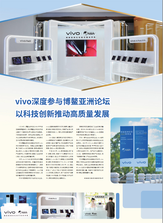 作为博鳌亚洲论坛战略合作伙伴,vivo展现了科技企业对技术创新的坚持和社会责任担当。在树立全球性高端品牌的同时,vivo也在为中国经济高质量发展与可持续发展贡献力量,为践行中国式现代化的伟大事业贡献智慧和力量。