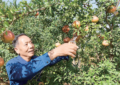 张庆连在修剪枝叶。 |