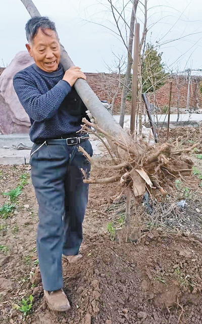 张庆连在栽种树木。 |