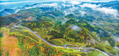 近年来,重庆万盛经开区打造宜居宜业的田园乡村,改善人居环境,把公路修到农户家门口,助力全域旅游、乡村振兴。图为3月29日,万盛经开区丛林镇绿水村公路的景色。