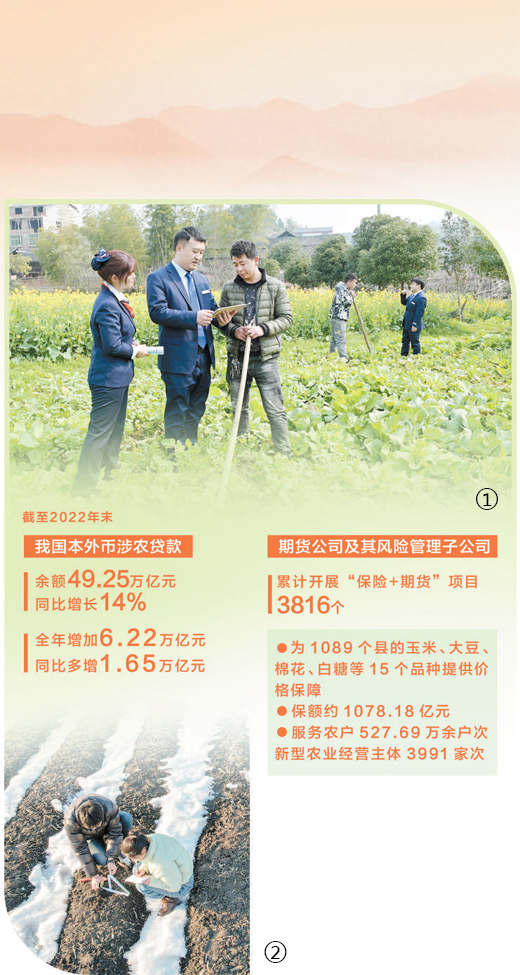近年来,在各项政策支持下,金融活水源源不断流入“三农”领域。人民银行数据显示,2022年末,我国本外币涉农贷款余额49.25万亿元,同比增长14%,增速比上年末高3.1个百分点;全年增加6.22万亿元,同比多增1.65万亿元。“要让不断增长的涉农投入真正灌溉到田间地头、真正用到农民身上,还要从农民、涉农经营主体的实际需求出发,进一步加快涉农金融产品创新,满足他们日益个性化、多元化的农村金融需求。”孙鹏表示。