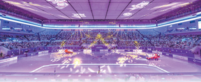 全国短道速滑冠军赛比赛期间的浇冰环节,首都体育馆利用先进的声、光、电技术,打造“最美的冰”。 |