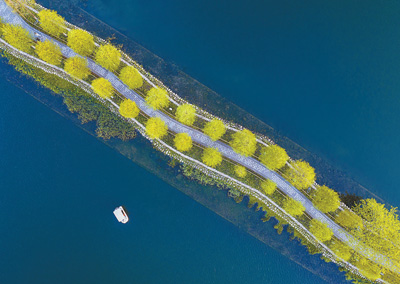 4月2日,景美如画的浙江省宁波市日湖公园湖心堤。