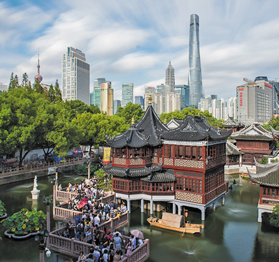 上海市豫园商城的标志性建筑九曲桥上游人如织。 |