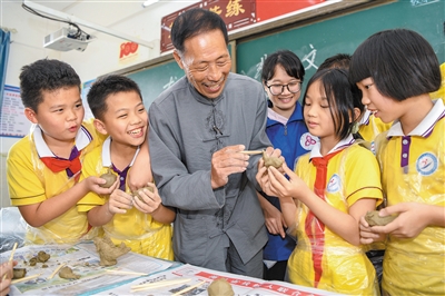 海南省海口市琼山区龙塘镇中心小学,龙塘雕刻艺术省级非遗传承人带领学生体验龙塘泥雕非遗文化的魅力。 |