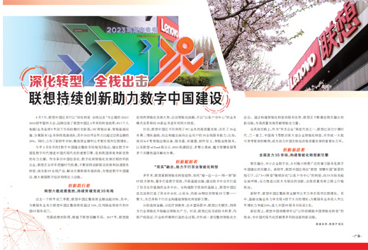 今年2月发布的《数字中国建设整体布局规划》指出,建设数字中国是数字时代推进中国式现代化的重要引擎,是构筑国家竞争新优势的有力支撑。作为亲历中国信息化、数字化和智能化发展历程的科技企业,联想正在牢牢把握时代机遇,不断坚持创新驱动发展和加速服务转型,成为新IT全栈产品、解决方案和服务提供商,为推进数字中国建设、做大做强数字经济持续注入动能。