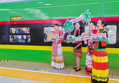 2023年4月13日上午,昆明南站,一身橄榄绿涂装的“复兴号”动车组早已准备就绪;站台旁,乘客们笑容满面,打卡合影、视频直播,好不热闹!8时08分,承载着中老两国人民的殷切期盼,首趟中老铁路国际旅客列车——D887次列车正式发车,一路向南;一小时后,D888次列车从老挝万象站驶出,向北飞驰……