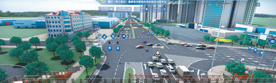 重庆(两江新区)国家级车联网先导区物理信息融合系统,通过数字孪生技术管控金渝大道欢乐谷路口实时路况。 |