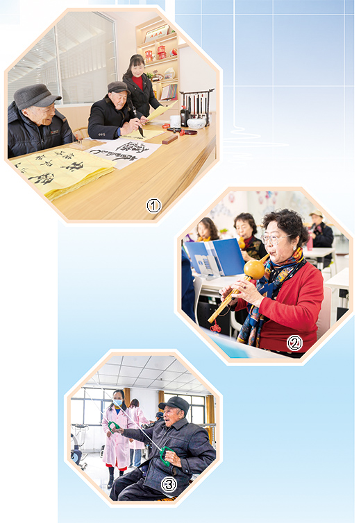 “我先给您松解松解腰部肌肉,改天咱们拍个片子再复查一下。”在河北省沧州市福安社区日间照料中心,医护人员正为王奶奶做理疗。服务台旁,几位社区老人在等待开药,医务人员向前来取药的老人耐心讲解药品使用注意事项、用法用量等,叮嘱他们按时服用;另一边的康复室内,康复师在给老人做康复;娱乐室里,还有几位老人在练习书法……