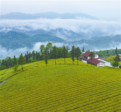谷雨时节,湖北省宜昌市五峰土家族自治县青岗岭万亩茶园一夜春雨,云雾缥缈,景致怡人。