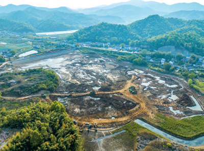 安徽省芜湖市繁昌区繁阳镇范马村,施工人员在对铁门水库实施清淤整治作业。 |