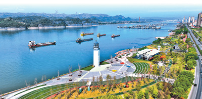 湖北省宜昌市,清理整治后的长江岸线。 |