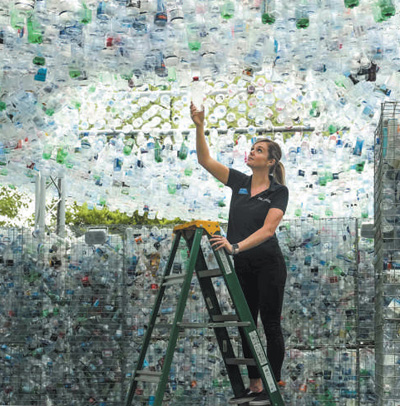 英国艺术家在伦敦动物园打造名为“废弃物空间”的艺术装置,鼓励人们停止使用一次性塑料瓶。 |