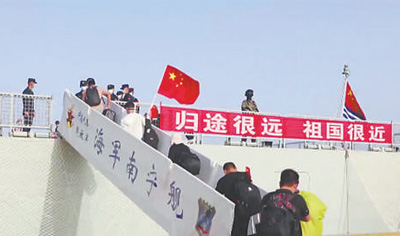 记者从海军有关部门了解到,执行紧急撤离任务的海军军舰于26日上午提前抵达并靠泊苏丹港后,迅速在码头设立安全警戒区域,特战队员持枪担负警戒。在中国驻苏丹大使馆武官、工作人员和海军官兵引导下,准备撤离的人员在码头进行登记和安检后登舰,撤离过程安全、有序。随后两艘军舰驶离苏丹港,于当地时间27日10时许(北京时间27日15时许),先后靠泊沙特吉达港,完成人员转接后再次迅即奔赴苏丹港,执行后续接运任务。