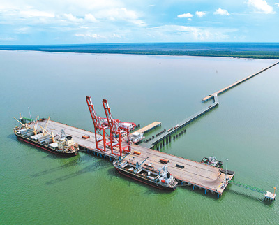 印度尼西亚金光纸浆厂配套码头是印尼邦加海峡沿线的第一个大型水工码头,由中国交通建设集团有限公司承建。码头投入使用以来,承担了厂区全部产品的出运任务。