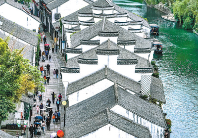 4月29日,浙江省湖州市南浔古镇景区,游人乐享“五一”假期。节日期间,景区结合古镇特色文化,策划灯光秀等活动,进一步提升游客体验,促进文旅市场复苏。
