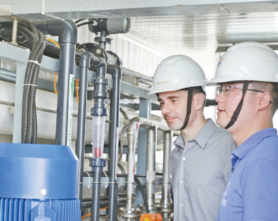 在巴西北里奥格兰德州若昂卡马拉市,中国国家电网巴西电力股份公司员工在检查净水设备。该苦咸水淡化公益项目让800多个家庭喝上优质饮用水。 |