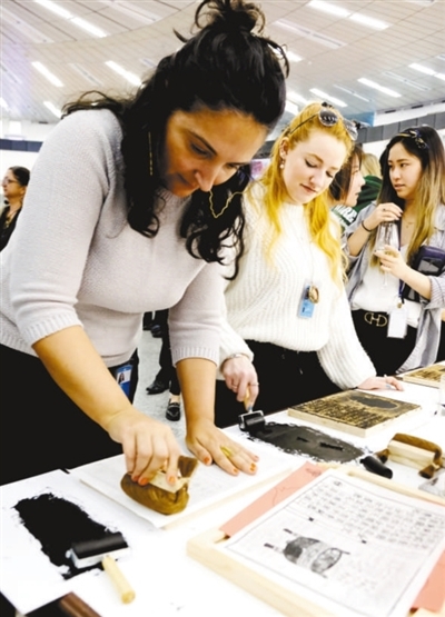 参观者在体验中国传统拓印。 |