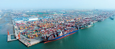 图为山东港口青岛港前湾集装箱码头。 |